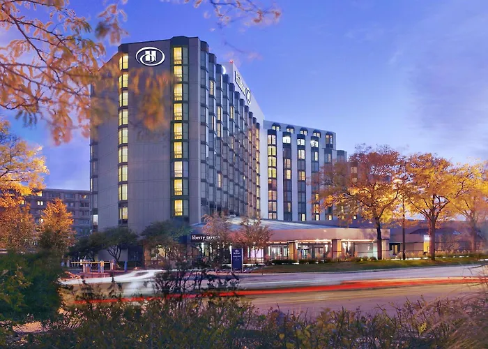 Hilton Rosemont Chicago O'Hare is a 4-star hotel offering a free 24-hour airport shuttle service and direct access to the Convention Center via an indoor skyway. Guests enjoy amenities such as an indoor swimming pool with skyline views and on-site dining options.