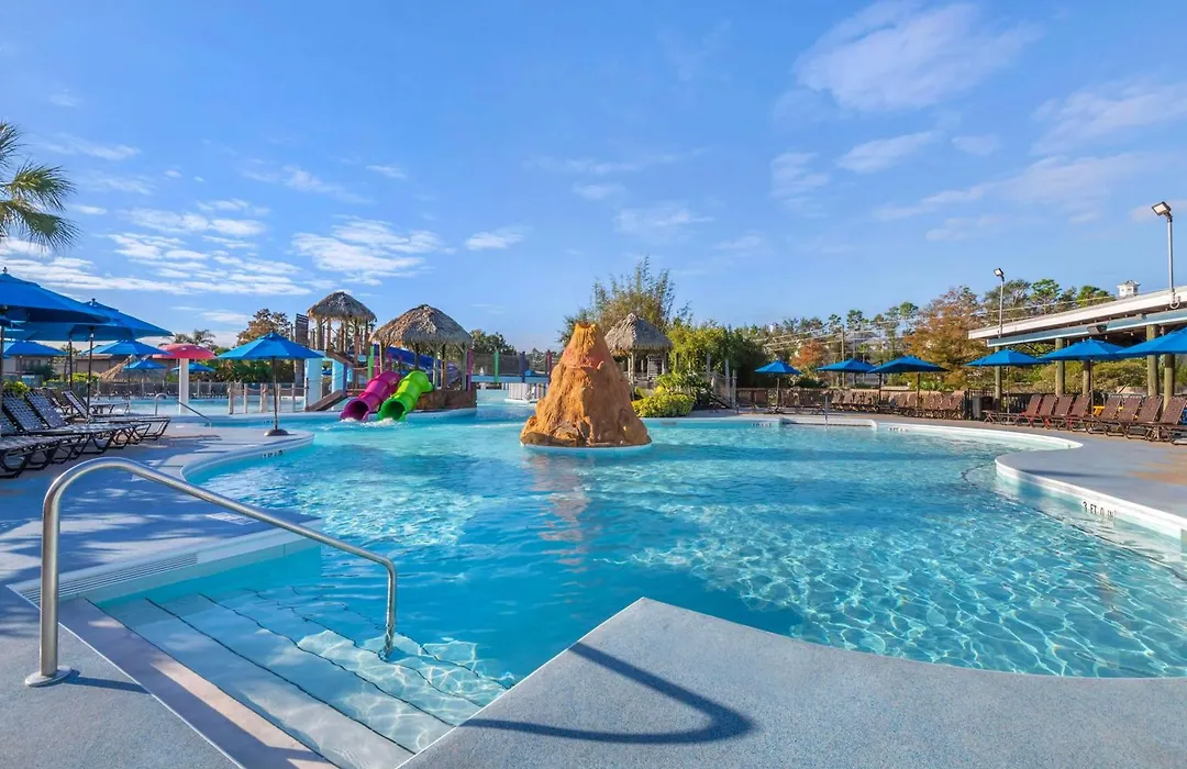 Recreational facilities include Liki Tiki Lagoon, a 2-acre water play area featuring five water slides, an erupting volcano, and a toddler's area. Guests can also enjoy on-site mini-golf, paddle boating, and a fitness center.