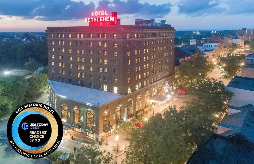 Historic Hotel Bethlehem, a 4-star hotel with a 9.0/10 Booking.com rating, features 125 elegantly restored guest rooms offering spectacular views of the National Historic Landmark District and Main Street. Guests can enjoy a variety of amenities including an on-site restaurant, event spaces, and a spa. This conveniently located Bethlehem hotel provides access to quaint shops and numerous restaurants within walking distance.