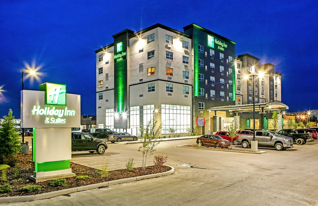 Holiday Inn Hotel & Suites - Calgary Airport North By IHG is a 3-star Calgary hotel featuring a heated indoor pool with a waterslide and a fitness center. The hotel offers 132 oversized rooms equipped with mini kitchenettes and provides complimentary shuttle service to Calgary International Airport from 4 AM to 11 PM on weekdays.