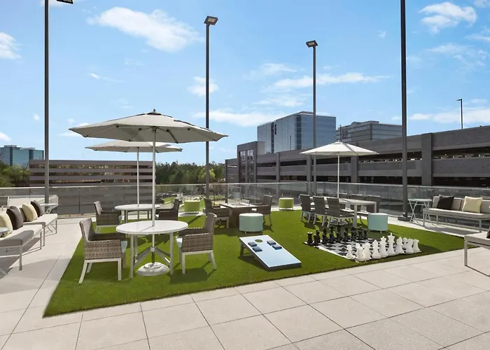 Hyatt House Atlanta Perimeter Center is a 3-star hotel with a Booking.com rating of 9.0/10. The hotel features an outdoor swimming pool, a fitness center, and a selection of dining options including an in-house restaurant and bar.