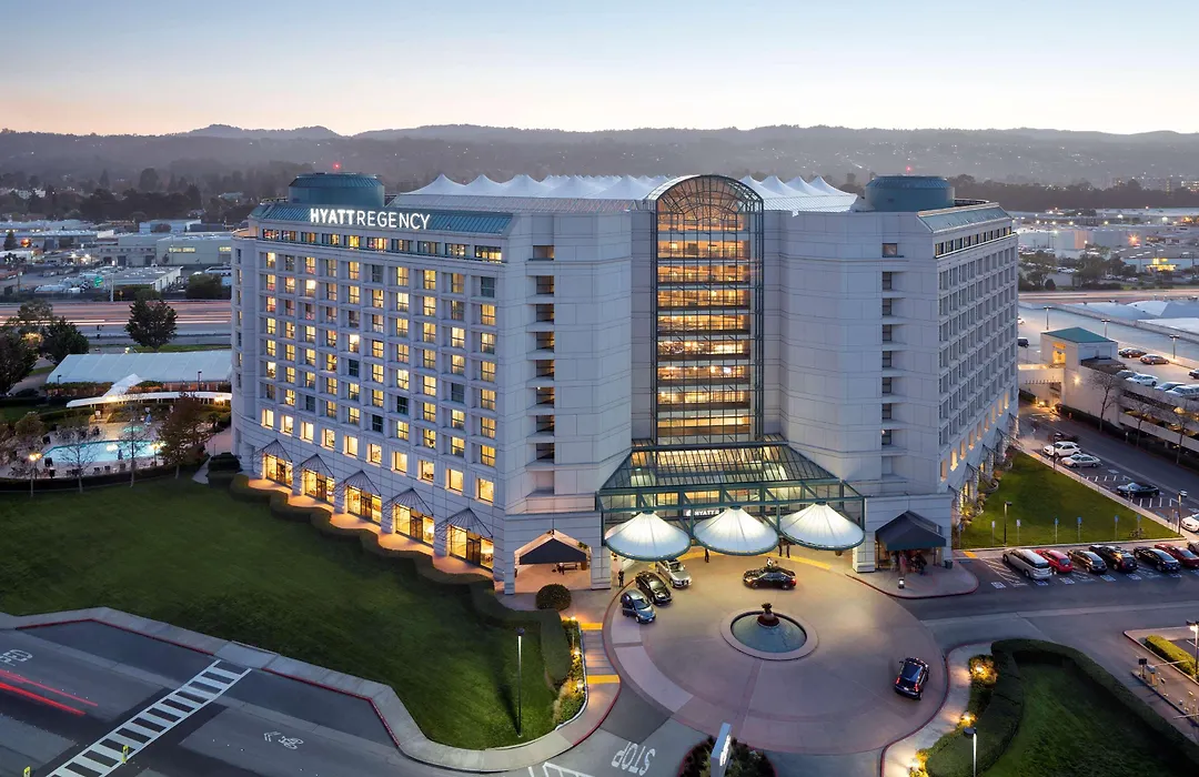 Hyatt Regency San Francisco Airport, a 4-star Burlingame hotel rated 8.2/10 on Booking.com, features a 24-hour fitness center and outdoor pool along with a complimentary shuttle service to San Francisco International Airport, located just 5 minutes away.