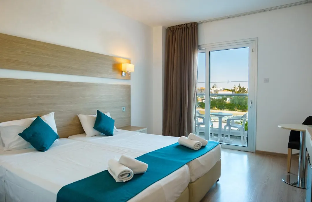 Rooms at Kapetanios Bay Hotel Protaras include air conditioning, flat-screen TVs, and some feature a seating area or balcony. Guests can enjoy free Wi-Fi access and additional amenities such as tea/coffee making facilities and refrigerators. The hotel can accommodate families, with rooms available for up to three adults or two adults and a child.