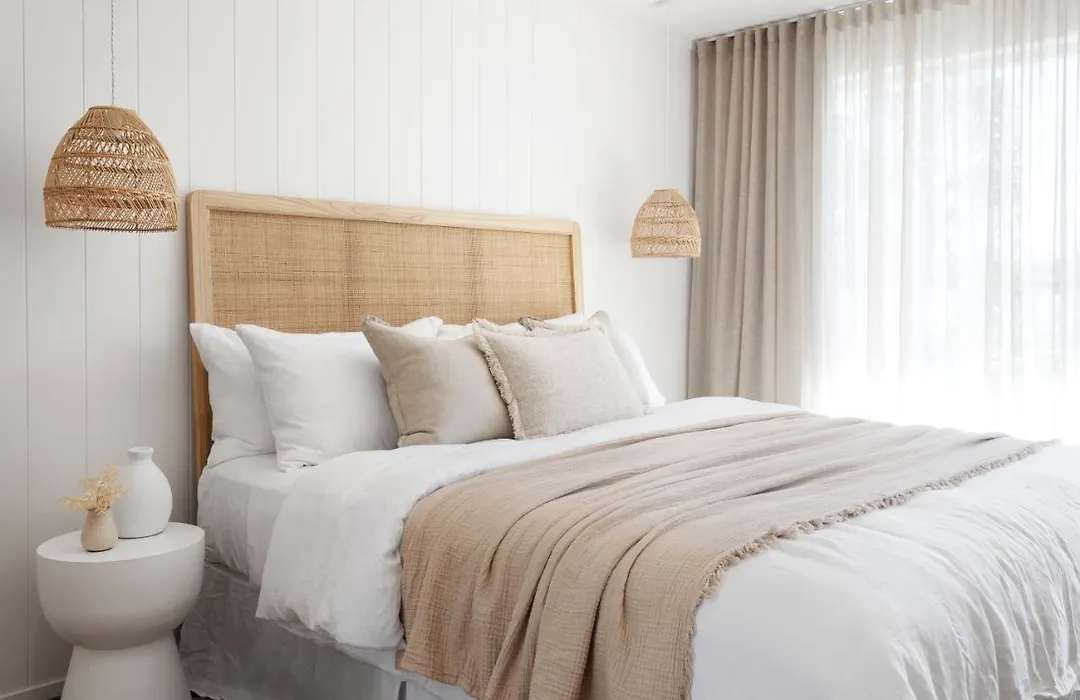 All 10 rooms at Loea Boutique Hotel feature king size beds with luxury bedding, ensuite bathrooms stocked with Mukti Organics body and haircare products, and private outdoor decks. Most rooms evoke a coastal luxe feel, creating an inviting atmosphere for guests.