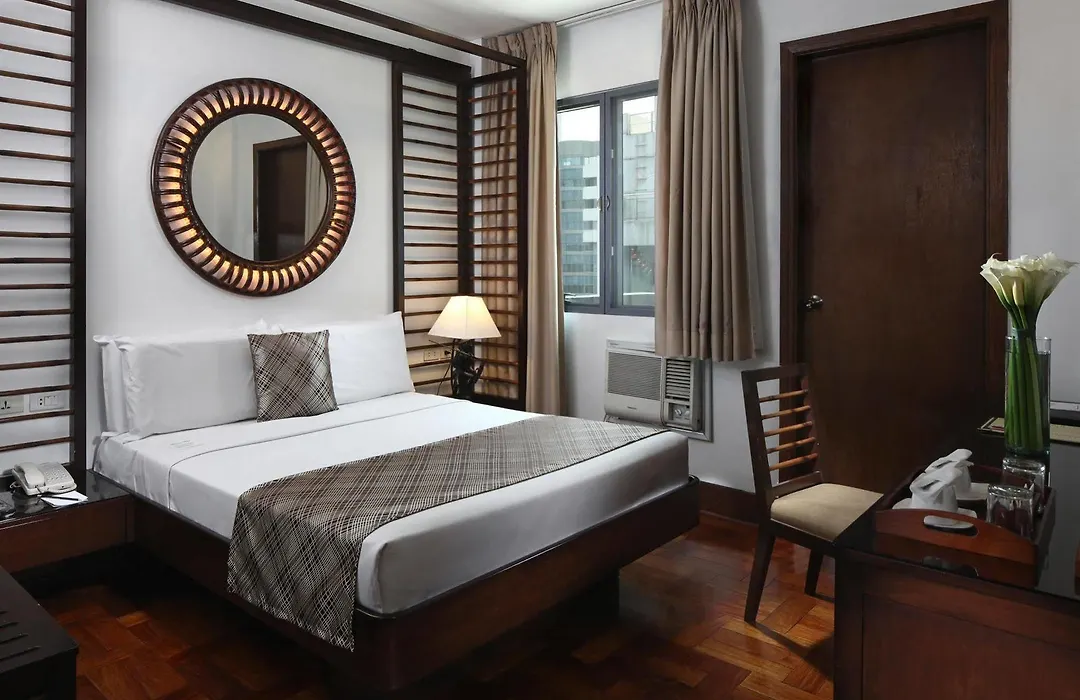 Cilantro Restaurant, located on the ground floor, serves Filipino and international dishes. Guests can enjoy drinks and sizzlers at Wings Over Manila Bar, open from 6 am to 12 am.