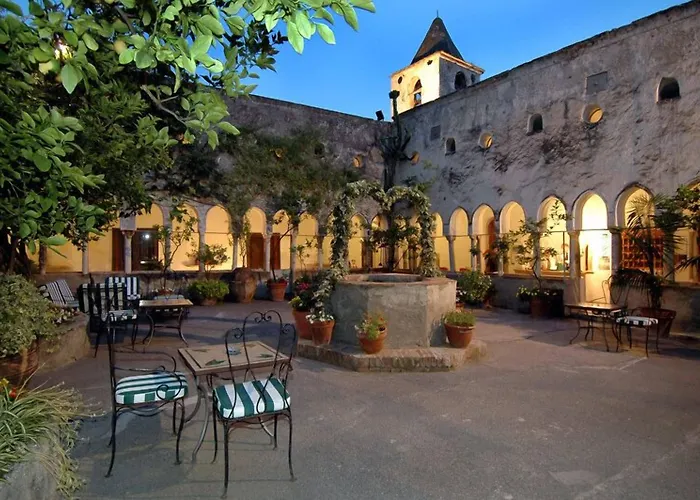 Hotel Luna Convento, a 4-star Amalfi hotel rated 9.0/10 on Booking.com, features panoramic sea views, traditional Mediterranean decor, and unique historical significance as it originated from a 13th-century Franciscan monastery. Guests enjoy amenities such as a seawater swimming pool, two restaurants, and a rooftop terrace. The hotel offers cooking courses in its Saracen Tower, emphasizing local culinary traditions.