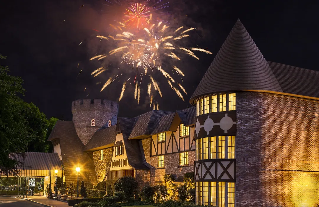 Anaheim Majestic Garden Hotel offers nearly 500 square feet of room space, with options including ADA-compliant and pet-friendly rooms. Families can choose connecting rooms, and unique themed accommodations like Castle Bunk Rooms with Queen and Twin bunk beds are available.