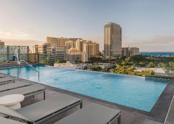 Marriott Vacation Club, Waikiki is a 4-star hotel in Waikiki offering a combination of spacious accommodations with kitchenettes and modern amenities. Highlights include an outdoor pool and fitness center, along with on-site dining options and private parking.