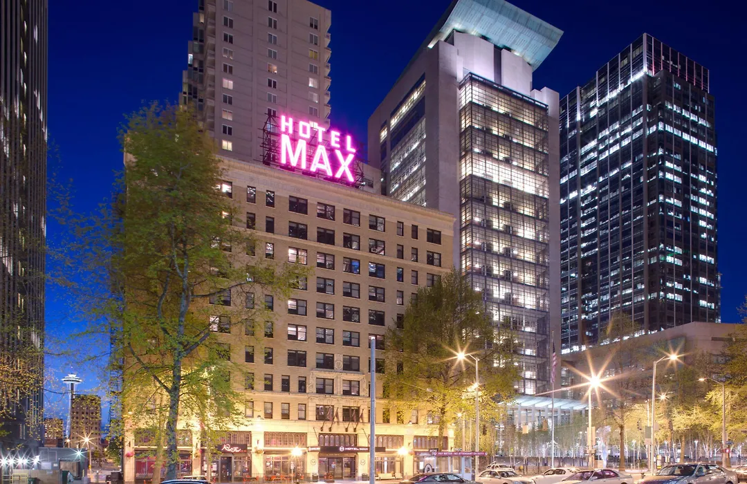 Hotel Max is a boutique hotel experience in downtown Seattle, featuring art, music, and playful amenities. This 3-star hotel accommodates guests with a range of room types and offers unique touches such as a complimentary craft beer hour and bike rentals.