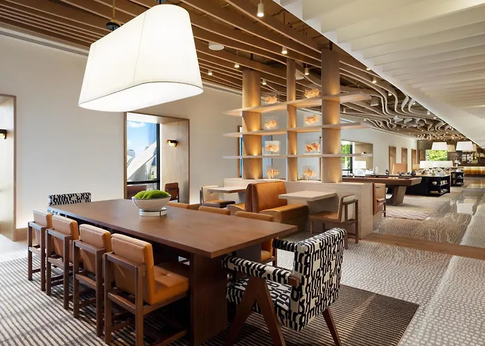 Dining options include the Church & Dey restaurant serving seasonal American cuisine and the Liquid Assets lobby bar with cocktails and live music on select nights. Convenient access is available to nearby restaurants like Joe & The Juice and Stage Door Deli.