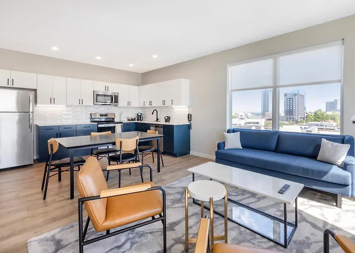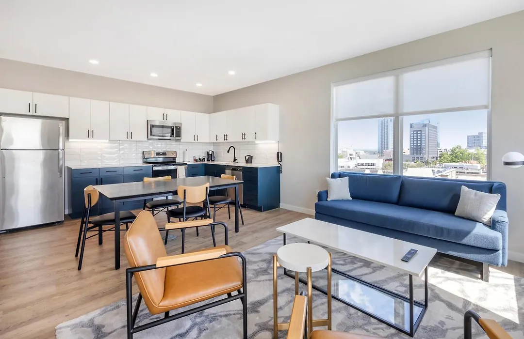 Guest rooms at Motif Nashville's Hotel On Music Row feature flat-screen TVs, air conditioning, and private bathrooms with showers. Selected rooms include balconies and seating areas, while suites offer full kitchens and living rooms for extended stays. Laundry amenities and premium cable channels are also available in every suite.