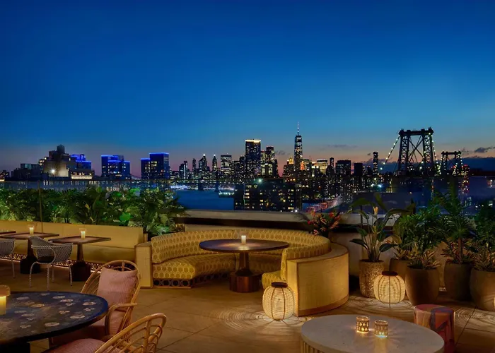Moxy Brooklyn Williamsburg, a 4-star hotel with a rating of 7.9/10, features air-conditioned rooms and a fitness center. The property offers a restaurant and bar designed by Bar Lab, known for its festive Tel Aviv-inspired restaurant serving Levantine cuisine.