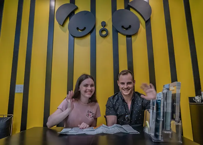 Each pod room at Panda Pod Hotel features gender-neutral sleeping spaces with essential amenities, including complimentary shampoo, hairdryers, and mini-lockers. The hotel also offers access to a co-working space equipped with high-speed Wi-Fi and a snack bar. Self-serve laundry facilities are available for guest convenience.
