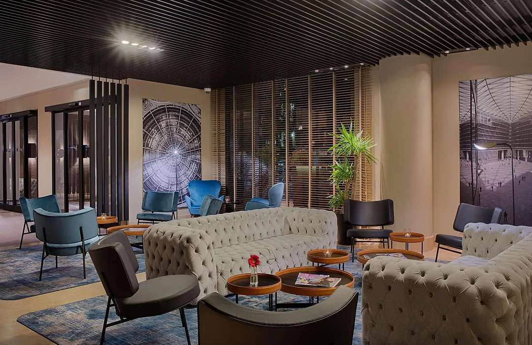 Dinner and lunch options at Radisson Blu Hotel Milan are offered at Leonardo, where guests can enjoy a signature breakfast buffet and Mediterranean specialties like squid ink tagliolini or thin-crust pizzas. The hotel & Lobby Bar provides a sophisticated venue for drinks and light snacks.