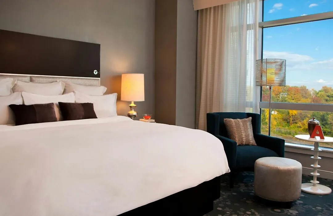 Relax in family-friendly hotel rooms and suites outfitted with modern technology, high-speed Wi-Fi, marble bathrooms, and sweeping views of the Arlington skyline or the Reagan National Airport runway from oversized windows. All rooms include amenities such as flat-screen televisions, air conditioning, and Aveda bath products.