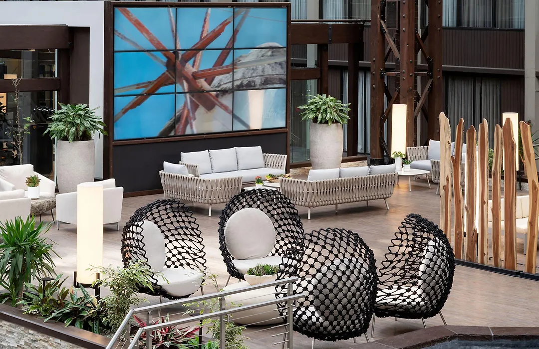 The SeaTac hotel features over 23000 square feet of adaptable event space equipped with modern AV technology, perfect for meetings and special occasions. Facilities include a business center and fitness center to cater to guest needs.