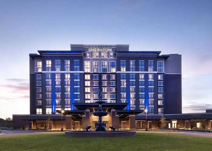 Sheraton Flowood The Refuge Hotel & Conference Center offers a resort-style experience with a golf course on-site and modern amenities. This 4-star flowood hotel features an outdoor pool, lazy river, and a variety of dining options, including American and Seafood cuisine.