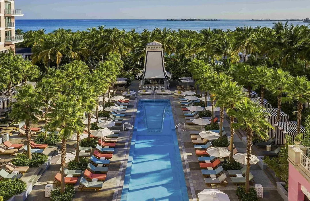 The hotel features the Baha Mar Casino with over a thousand slot machines and a golf course designed by Jack Nicklaus. Guests can relax at the Baha Bay Beach Club, which includes infinity pools and direct beach access.