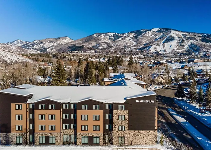 Residence Inn By Marriott Steamboat Springs, a 3-star hotel rated 9.0/10 on Booking.com, features spacious all-suite accommodations with kitchen facilities, making it suitable for extended stays. Amenities include an outdoor swimming pool, a bar, fitness center, and complimentary breakfast. Pet-friendly options are available.