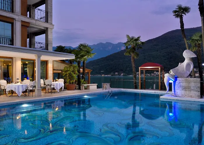 Swiss Diamond Hotel & Spa, a luxurious 5-star hotel rated 8.4/10 on Booking.com, overlooks the shores of Lake Lugano and features a spa, indoor and outdoor pools, and three restaurants. It is recognized for its exclusive services and elegant design.