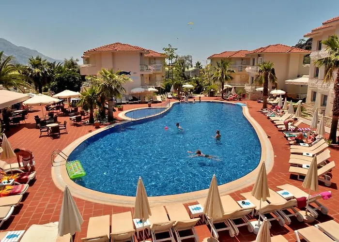 The Blue Lagoon Deluxe Hotel is a 3-star property featuring a large outdoor pool and a children's pool, ideal for family-friendly stays. This welcoming hotel is surrounded by mountains in Oludeniz, providing a romantic indoor restaurant and outdoor dining options.
