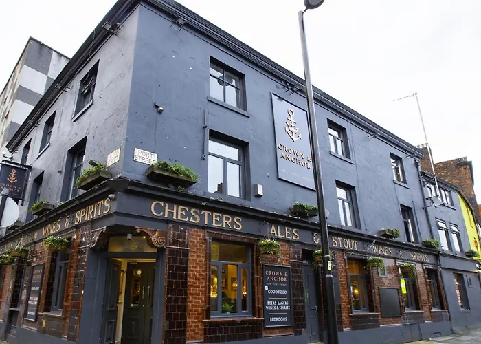 The Crown & Anchor, a 3-star Manchester hotel with a 7.5/10 Booking.com rating, offers a selection of elegantly designed rooms and an on-site restaurant serving a variety of street food. Guests benefit from free WiFi and a lively bar featuring real cask ales and world wines.