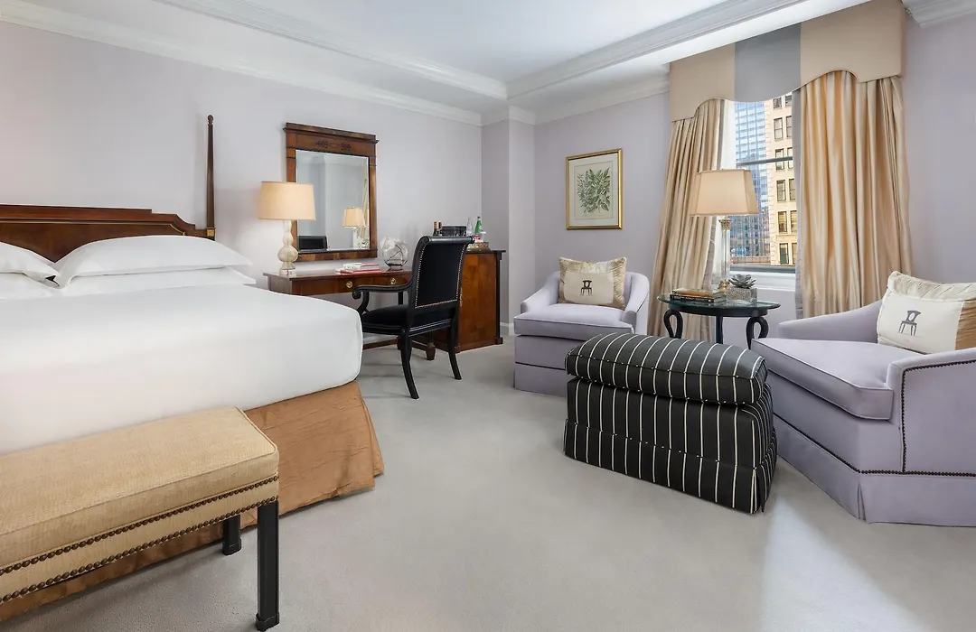 Rooms at The Michelangelo Hotel offer a perfect combination of style and comfort, featuring marble bathrooms with 50-gallon soaking tubs and spacious layouts. The selection includes Deluxe rooms, Studio rooms, One-Bedroom Suites, and Junior Suites, providing various options for both leisure and business travelers.