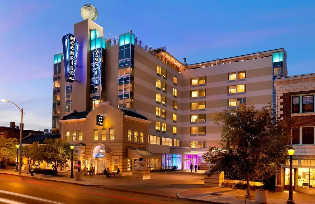 The Moonrise Hotel, a 4-star boutique hotel, features a rooftop garden bar offering views of the Delmar Loop district and St. Louis skyline. This eco-friendly property includes luxury amenities and is pet-friendly, ensuring a welcoming experience for all guests.