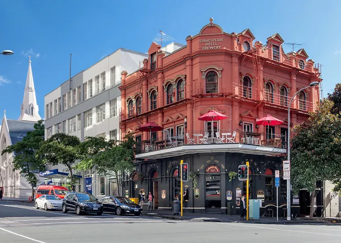 The Shakespeare Hotel is a 3-star boutique hotel situated in the heart of Auckland's CBD, featuring a unique brewery and restaurant. Guests can enjoy a range of room types, all with ensuite bathrooms, plus easy access to local attractions.