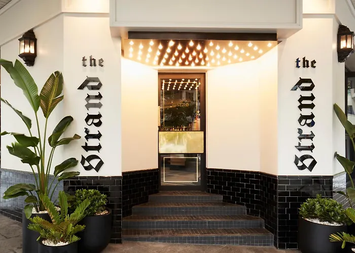 The Strand Hotel, rated 8.1/10 on Booking.com, features a rooftop bar and an exclusive French-inspired Bistro in Darlinghurst. This adults-only accommodation incorporates refined, mid-century furnishings and provides essential amenities for guests.