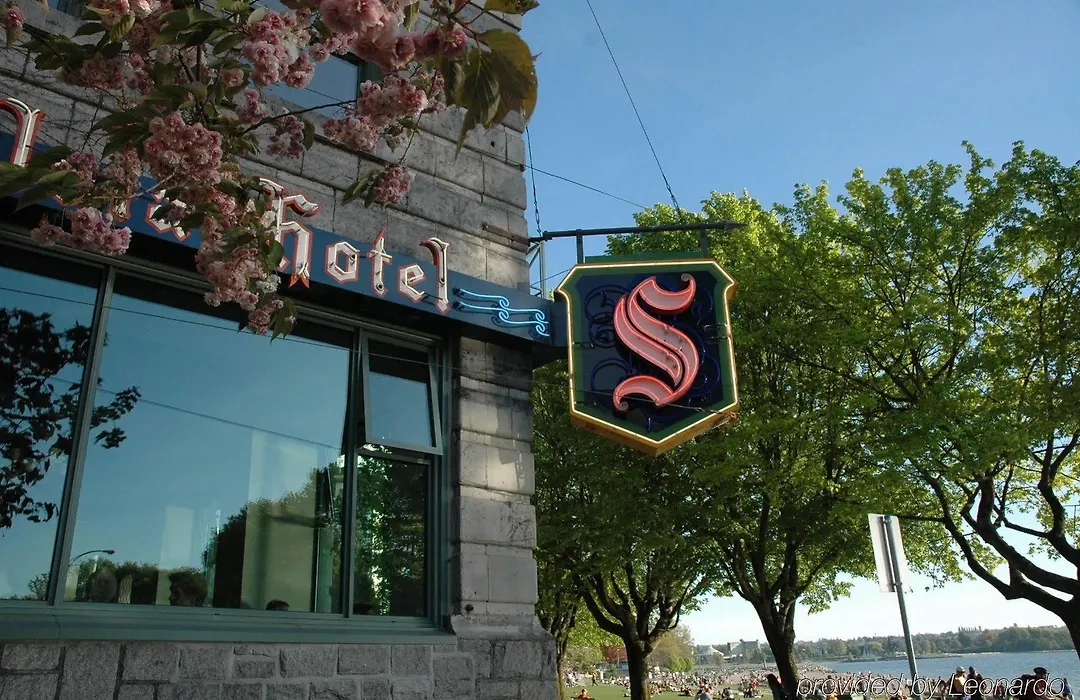 Guests can enjoy activities such as swimming in English Bay or biking along the seawall. The Vancouver Aquatic Centre with its pool and fitness center is a short distance away. The historic property also features Boston ivy adorning its facade, which is a well-known landmark in the area.