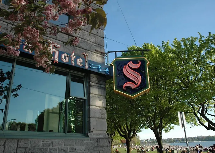 The Sylvia Hotel, a 3-star Vancouver hotel, is a designated heritage building located on English Bay, adjacent to Stanley Park. It features 120 guest rooms and suites with modern amenities, offering a unique beachside dining experience and event facilities.