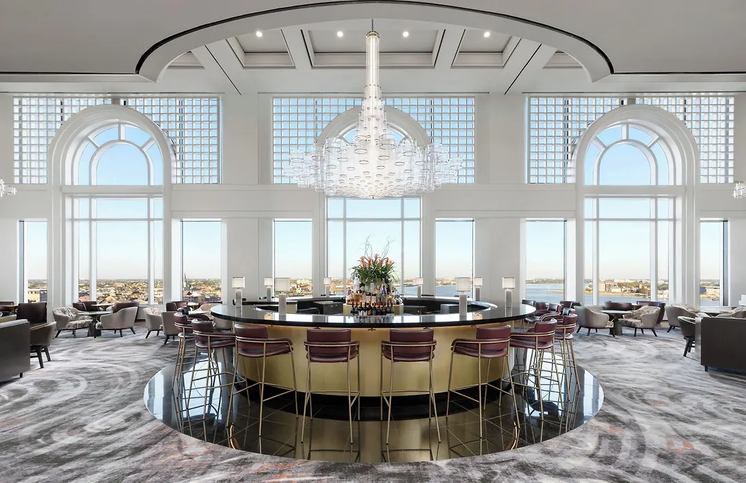 Bistro at the Bend serves continental breakfasts and Cajun cuisine, with options like classic Eggs Benedict. Observatory Eleven, located on the 11th floor, offers craft cocktails and river views in a lounge setting.