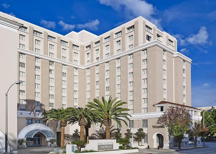 The Westin Pasadena, a 4-star hotel with an 8.2/10 rating on Booking.com, features a rooftop pool overlooking Historic Old Town and the San Gabriel Mountains. It offers a heated outdoor pool, a business center, and complimentary WiFi throughout the property.