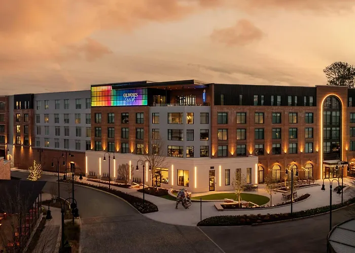 Dining options include Prologue Dining & Drinks, a restaurant that offers Southern cuisine, and Oliver's Twist Bar & View, a rooftop venue known for creative cocktails and scenic views. Guests can also explore artisanal shops and chef-driven restaurants in the nearby Town at Trilith.