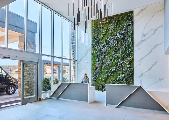 Hotel Trio Healdsburg is a 3-star all-suite hotel with an 8.4/10 Booking.com rating, serving as a base camp for tourists and wine professionals in Sonoma County. Notable amenities include a heated pool, daily breakfast, and a Coffee and Wine Bar.