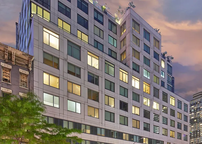 Truss Hotel Times Square, a newly built 4-star luxury hotel, features a sleek and upscale ambiance complemented by a rooftop garden terrace offering panoramic views of Hudson Yards. This New York hotel provides essential amenities such as a 1000-square-foot fitness center and multiple event spaces.