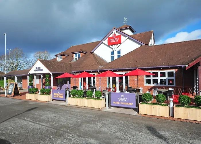 The Hungry Horse Restaurant serves a variety of meals, including light lunches and pub classics. Guests can enjoy daily deals and a vibrant atmosphere in the bar area, which also includes quiz nights for entertainment.