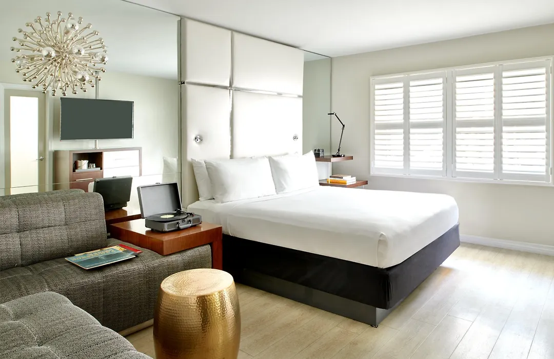 Leisure options include the largest saltwater pool in West Hollywood, featuring live DJ sets and pool parties on weekends. Guests can also access a 24-hour fitness center and The Shred Shed for musical inspiration, along with pet-friendly features for furry companions.