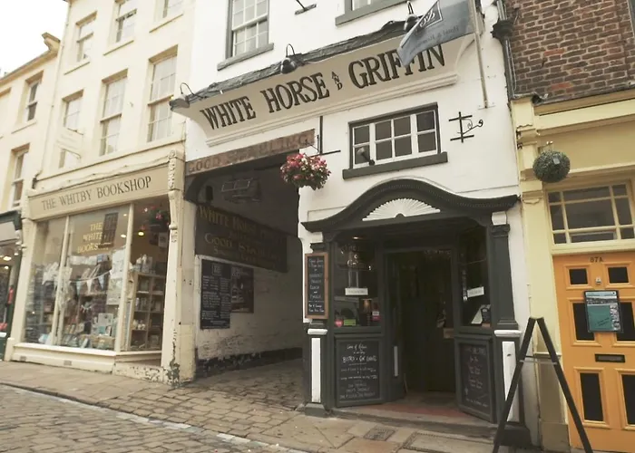 White Horse & Griffin, a 3-star Whitby hotel with a 7.9/10 rating on Booking.com, features 10 uniquely styled en-suite rooms and a renowned bistro serving classic British cuisine. This historic establishment is located along a cobbled street, retaining much of its original charm.