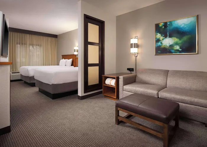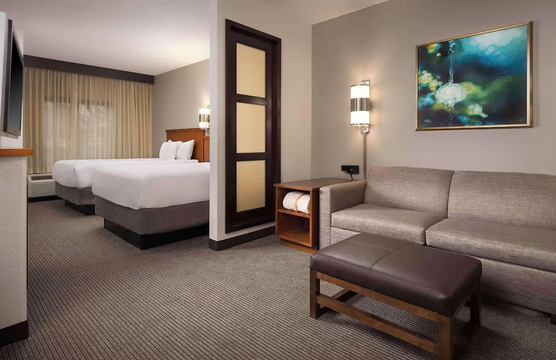 Guests enjoy a spacious guestroom with a 42-inch high-definition flat panel TV, signature Hyatt Grand Bed, and a plush Cozy Corner oversized sofa sleeper that is separated from the sleeping area. All 123 rooms come equipped with air conditioning and laptop-friendly workspaces.