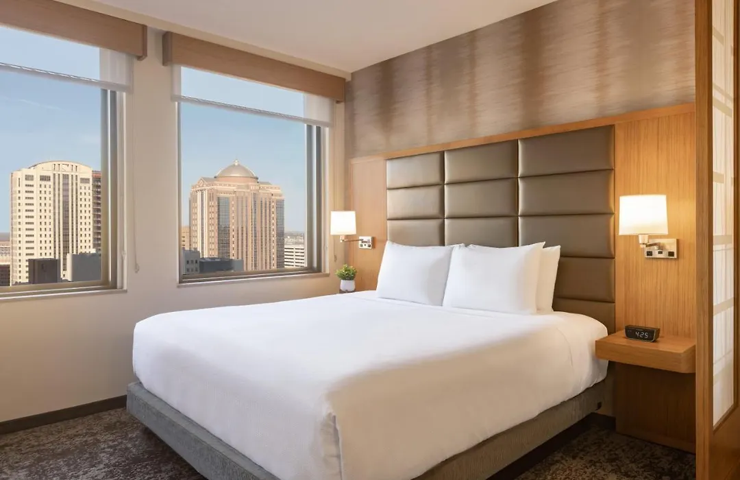 Rooms at Hyatt Place Houston Downtown are equipped with a flat-screen TV, a desk, and a private bathroom with designer toiletries. Each room also includes a fridge and tea/coffee making facilities.