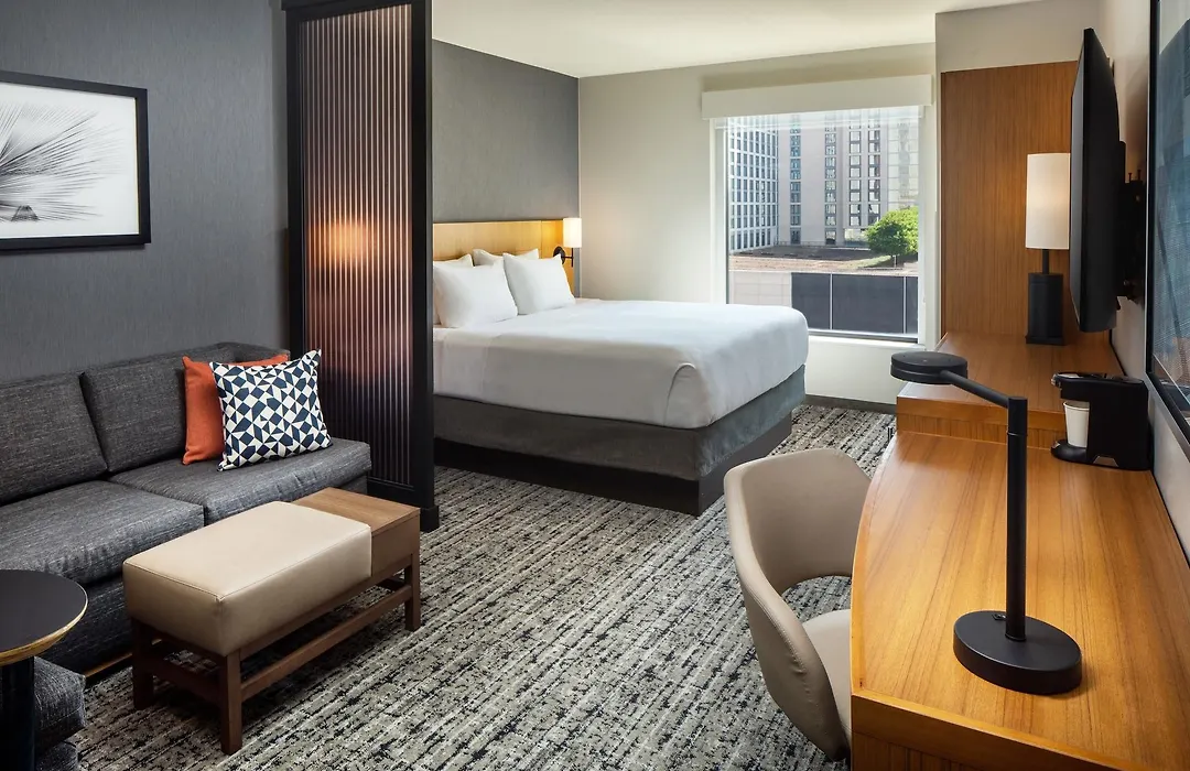 Each of the 255 spacious rooms at Hyatt Place Nashville Downtown is equipped with a 42-inch flat-screen TV, air conditioning, and granite counters in private bathrooms. Thoughtful features include laptop-compatible safes and a sofa bed for additional comfort.