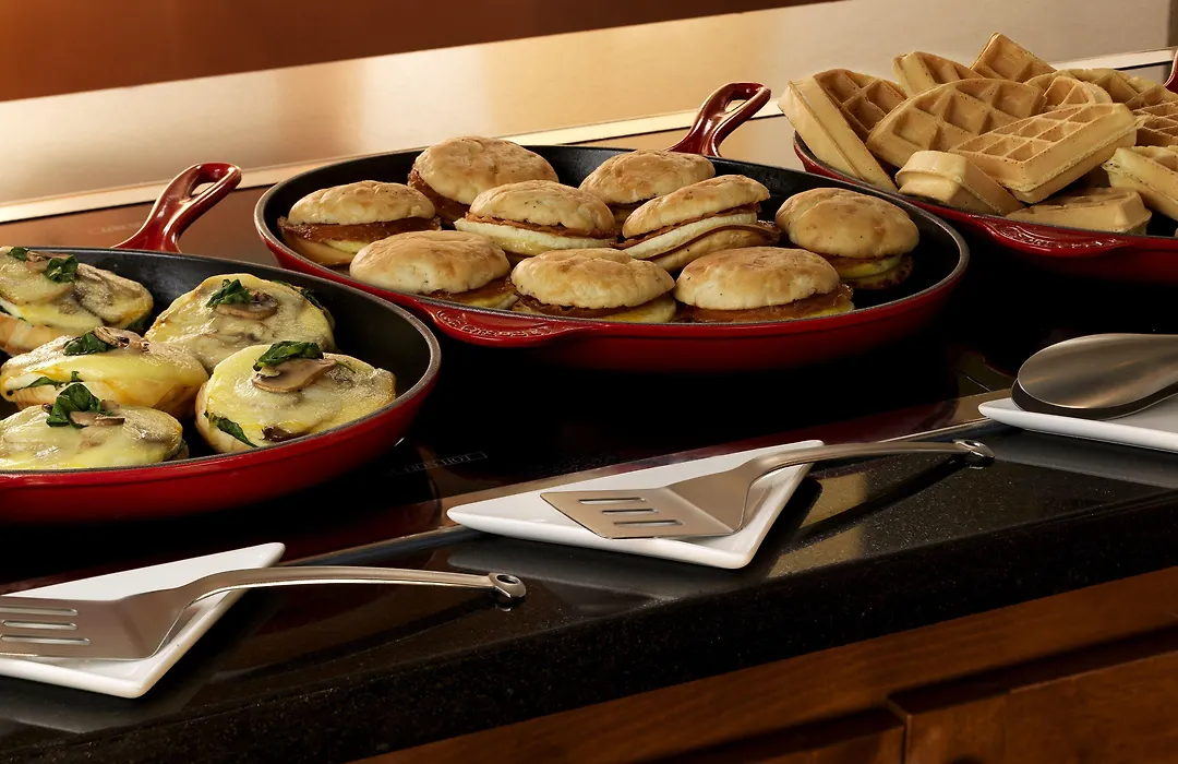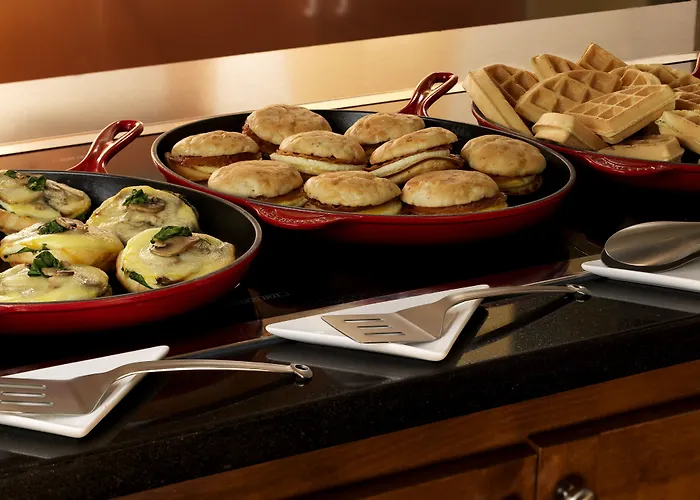 On-site dining includes a coffee shop/café serving freshly prepared bar bites and shareables. Guests can enjoy a complimentary breakfast buffet with fruit, cereal, and hot items. Numerous nearby restaurants include Eataly and Trademark Taste + Grind, both within a short walk.