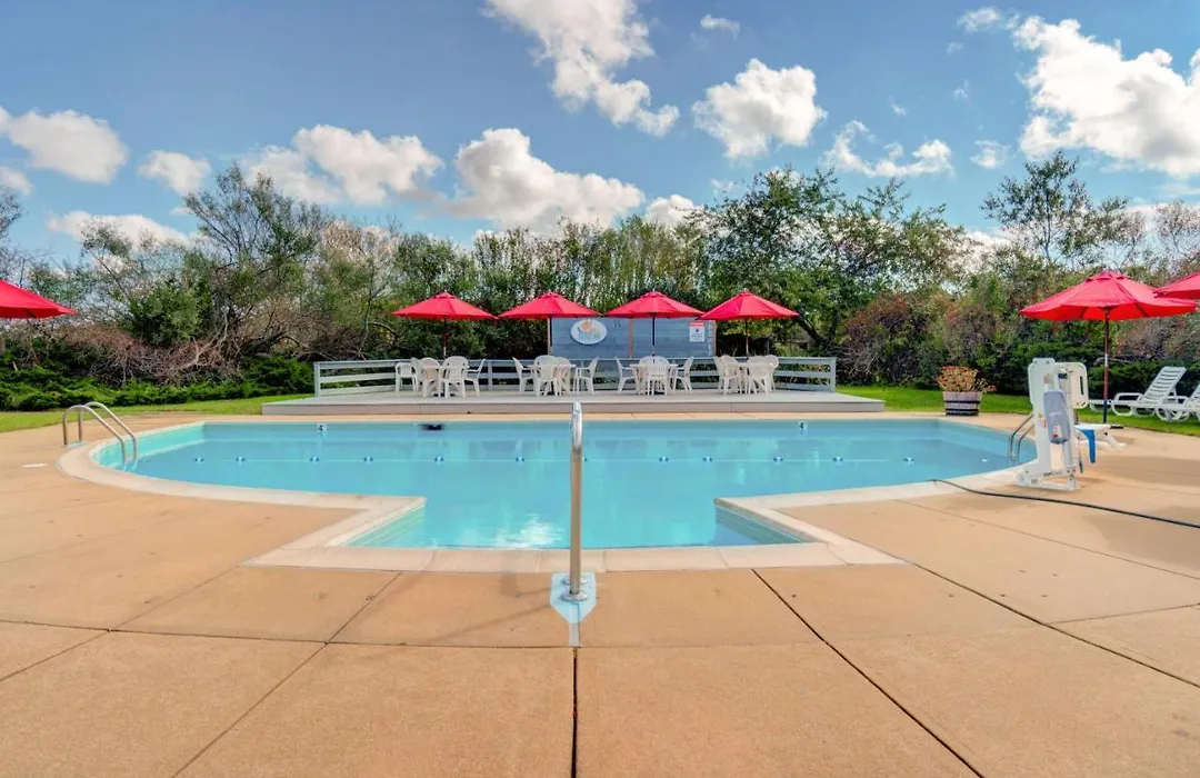 The Island Inn, an 8.1/10 rated Oak Bluffs hotel, features 51 air-conditioned condominiums across five acres, each equipped with full kitchens. Guests can enjoy amenities such as an outdoor heated pool and access to tennis courts.