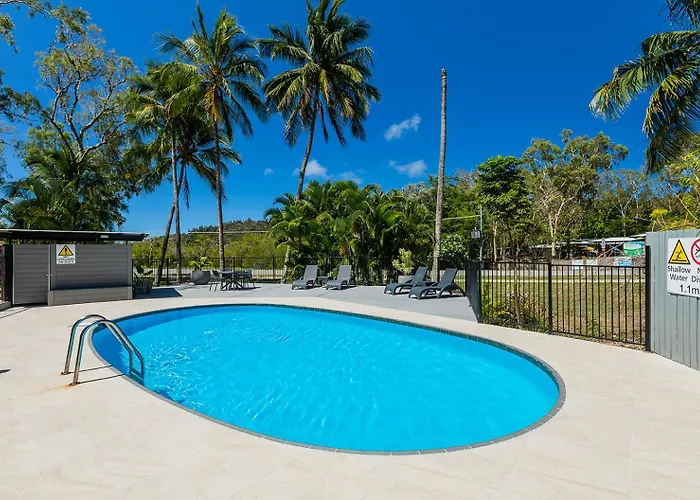 Kipara Tropical Rainforest Retreat offers private budget accommodations within a natural sanctuary of greenery. This 3-star Airlie Beach hotel features self-contained villas and private rooms ideal for both short stays and long-term visits.