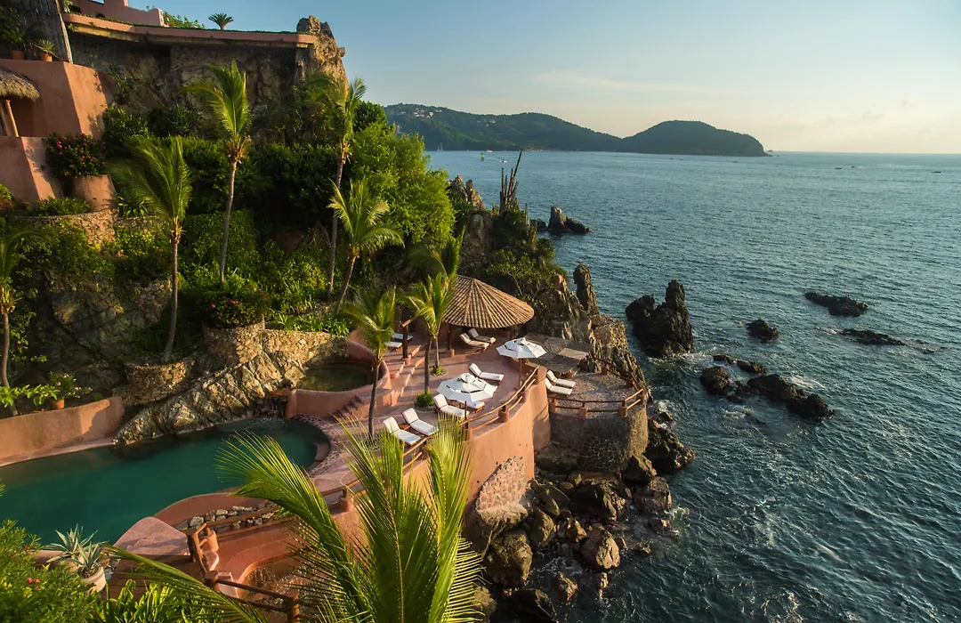 La Casa Que Canta (Adults Only), a 5-star Zihuatanejo hotel, features stunning ocean views with distinctive architectural design and luxurious accommodations. Guests can enjoy an oceanfront saltwater pool, four stylish dining options, and wellness services.