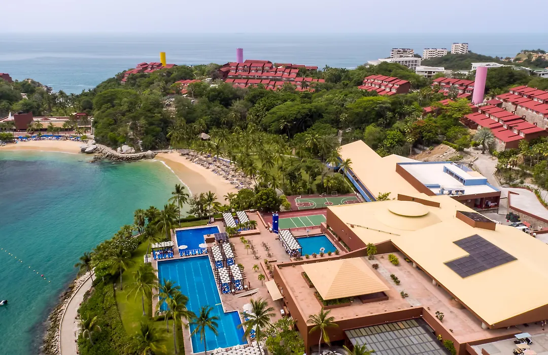 Las Brisas Huatulco, a 5-star Santa Cruz Huatulco hotel with an 8.9/10 rating, features four beaches, multiple dining options, and extensive recreational facilities. It offers accommodations tailored for families and features unique meeting spaces ideal for events.