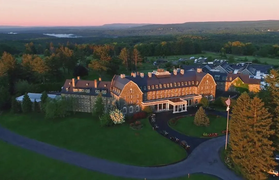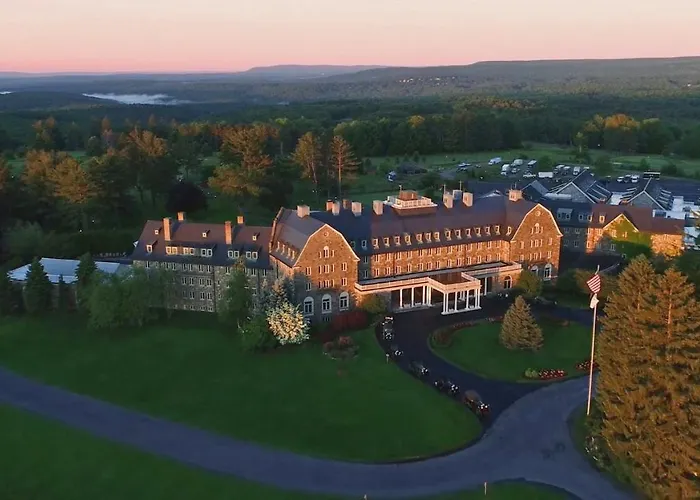 Skytop Lodge, a 3-star hotel with an 8.8/10 Booking.com rating, offers a range of family-friendly accommodations and amenities including an outdoor pool, hiking trails, and a golf course. Guests can enjoy unique experiences like the Treetop Adventure Course and a variety of on-site dining options.