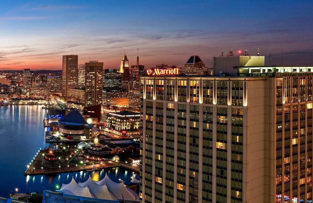 The Baltimore Marriott Waterfront boasts 754 spacious guest rooms featuring premium bedding, air conditioning, and flat-screen televisions. Many accommodations provide stunning views of the harbor or the Baltimore skyline, with select rooms including deep soaking tubs for added comfort.